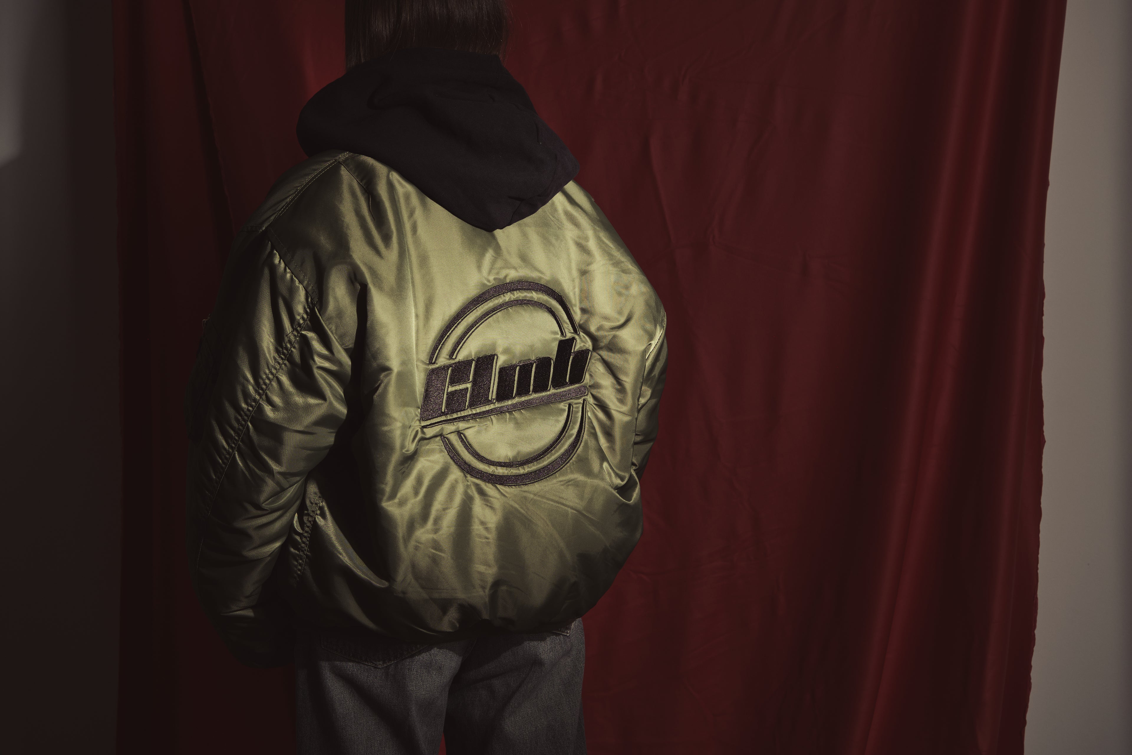 Nylon bomber jacket-embroidered GREEN